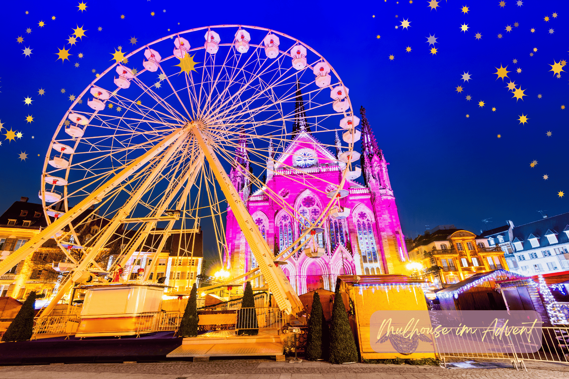 Mulhouse ist bekannt für seinen einzigartigen Weihnachtsstoff, der jedes Jahr neu entworfen wird und das Stadtbild in festliche Farben taucht. Der Weihnachtsmarkt erstreckt sich rund um den Place de la Réunion mit seiner imposanten Stephanskirche und lockt mit Handwerksständen, kulinarischen Genüssen und einem Riesenrad mit Blick über die Stadt. Wer das Außergewöhnliche sucht, findet hier eine perfekte Mischung aus Tradition und Moderne.