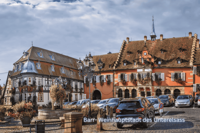 Barr selbst liegt direkt an der Elsässische Weinstraße, die sich durch Weinberge, traditionsreiche Weindörfer und bekannte Orte des Unterelsass zieht. Entlang der Route lassen sich zahlreiche weitere Ausflugsziele flexibel kombinieren – von kleinen Winzerorten bis hin zu größeren Städten.