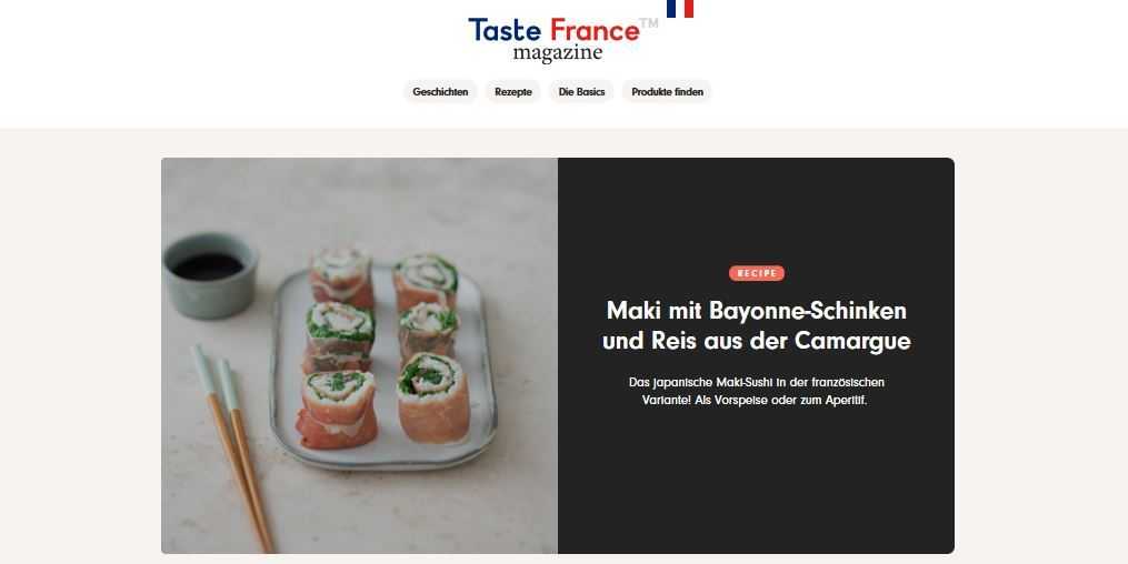 Mit seinem Fokus auf aktuellen Konsumtrends und modernen Formaten verkörpert TasteFrance.com die neue französische Genusskultur: Authentisch, unkompliziert und einfach lecker!